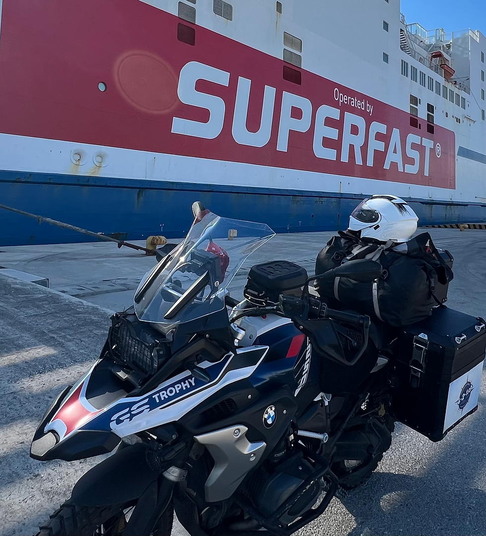 So eine Fährpassage ist immer wieder speziell, Wenn dabei aber gleichzeitig auch noch ein Länderwechsel ausserhalb des Schengenraums dazu gehört und dies mit dem eigenen Fahrzeug, dann ist das - gelinde gesagt - eine ziemlich nervenaufreibende, chaotische und zeitraubende Angelegenheit - und dies bei 38 Grad in der prallen Sonne und auf viel zu engem Raum, d.h. als Motorradfahrer zwischen der ganzen Abfertigung des Schwerverkehrs. Also, Augen zu und durch und wie das so ist; als Biker hält man zusammen - und schon geht vieles leichter. So ergeben sich weitere Kontakte nach Deutschland, Türkei, Polen, USA, Spanien - und man weiss, dass man sich wird darauf berufen können, wenn man deren Land bereisen wird.